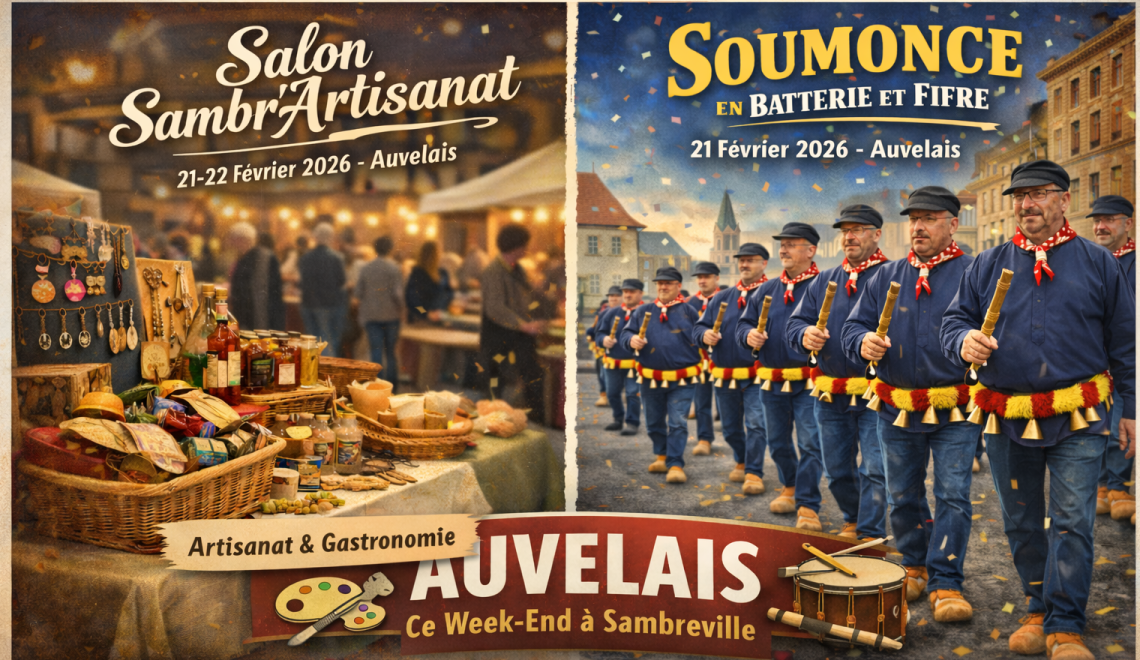 Ce week-end, Auvelais (Sambreville) vibrera au rythme de deux rendez-vous incontournables : la 16e édition du Salon Sambr’Artisanat et la traditionnelle Soumonce en batterie et fifre. Créativité locale et folklore se donneront rendez-vous au cœur de la commune. 🧵 Sambr’Artisanat…